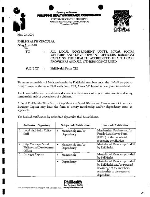 Philhealth Form Ce1 Philippine Health Insurance Corporation