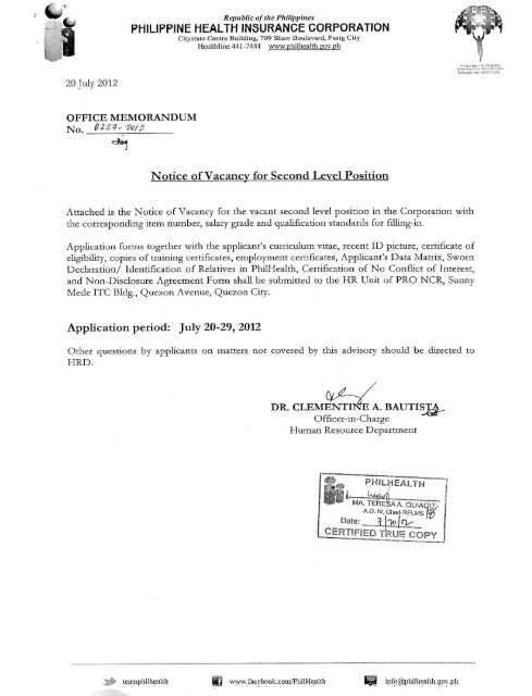 CERTIFICATE NoSCP000242Q SOCOTEC certifies that. I will be rewriting this post soon. 2014 Philippine Health Insurance Corporation Citystate Centre 709 Shaw Boulevard 1603 Pasig City Action Center 8441-7442.
