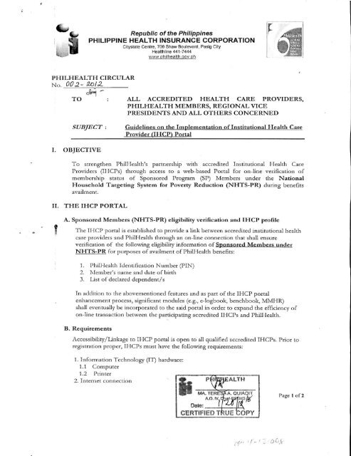 Philhealth Circular No 10 S 2012 Philippine Health Insurance