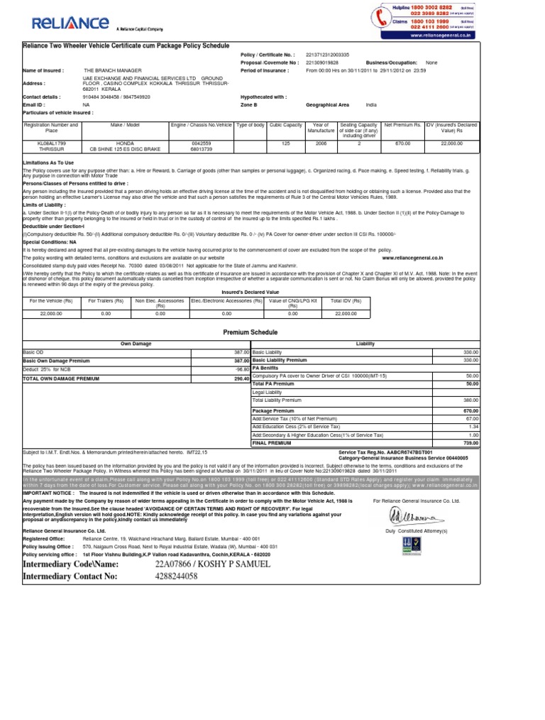 Exclusions under Reliance two wheeler insurance plans. Ad Search Faster Better. Reach the office and provide the registration number of your two wheeler.
